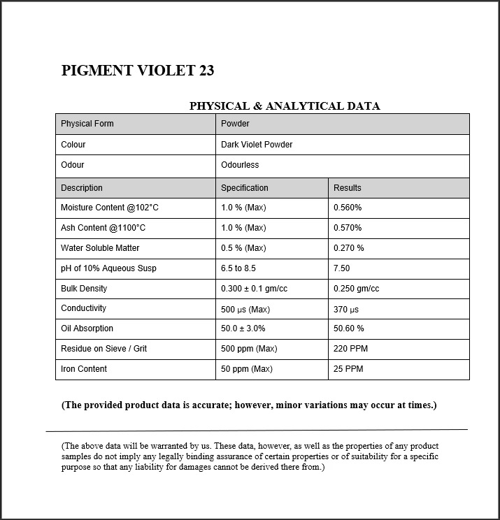 Pigment Violet 23 (PV23) โ one of the most widely used high-performance violet pigments in the market. ๐จ It belongs to the dioxazine pigment group ๐งช and is known for its deep bluish-violet shade, very strong tinting strength, and exceptional light & weather fastness. โ๏ธ๐ฆ๏ธ